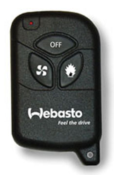 The digital timer has an on/off feature, and three individual start-up times, which can be programmed 24 hrs in advance. The BlueHeat Digital Timer mounts on the dashboard for easy access. The Webasto Remote Start Unit allows you to turn on or off the heater from as far away as 100 feet. Button operations include: Heater On, Blower On and Heater Off.
