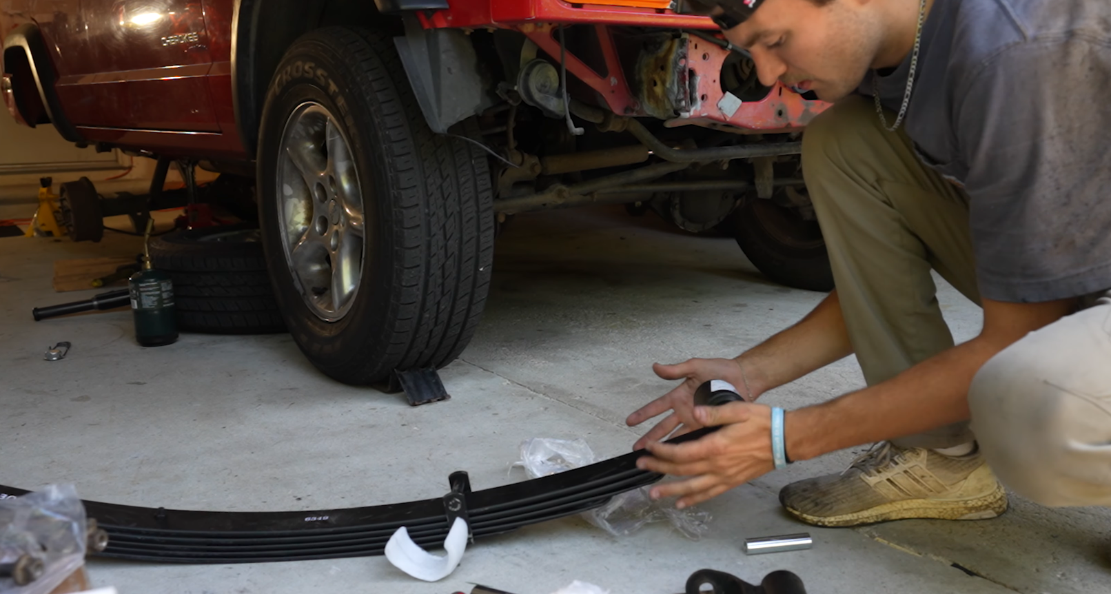 They removed the springs from the 2000 Jeep XJ to prepare for the next steps of the build. Using steady heat helped loosen the parts and made it easier to take everything apart. After several rounds of heating and adjusting, the springs came free.