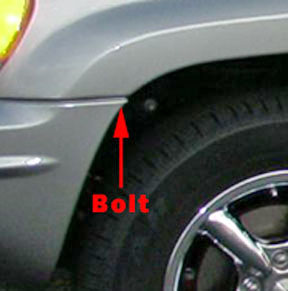 2. With a 10mm socket wrench, remove one upper bolt in each wheelwell that attaches the fascia to the fender.