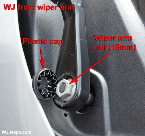 | Wiper arm nut and cap | Wiper arm removal tool | Front wiper arm |