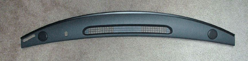 3. Remove the instrument panel top cover. With a wide flat tool (3″ plastic putty knife or similar, gently pry the dash trim panel upwards starting at either end. You can then get your fingers under the lip and lift it up, working your way to the opposite end. The trim is held in place by four spring clips. There are no parts or wires attached to the trim cover. (Fig. 2 & 3).