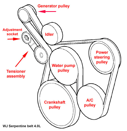 Welcome to the JeepSpecs.com in-depth page of WJ Generation Jeep Grand Cherokee serpentine belts. Did we mis anything? Please get in touch with us and tell us about it!