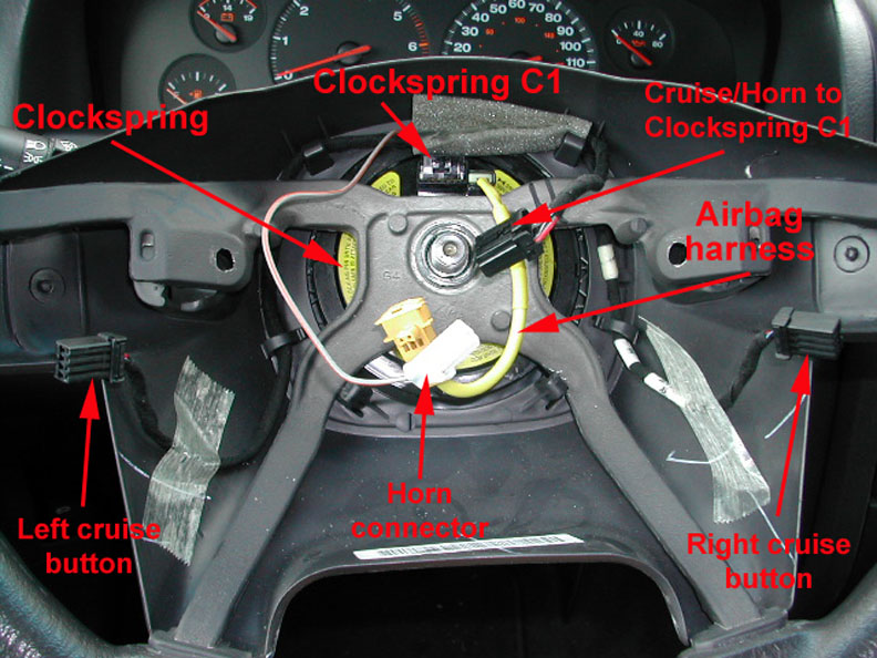 Clockspring and wiring for the airbag, horn, cruise control and remote radio switches