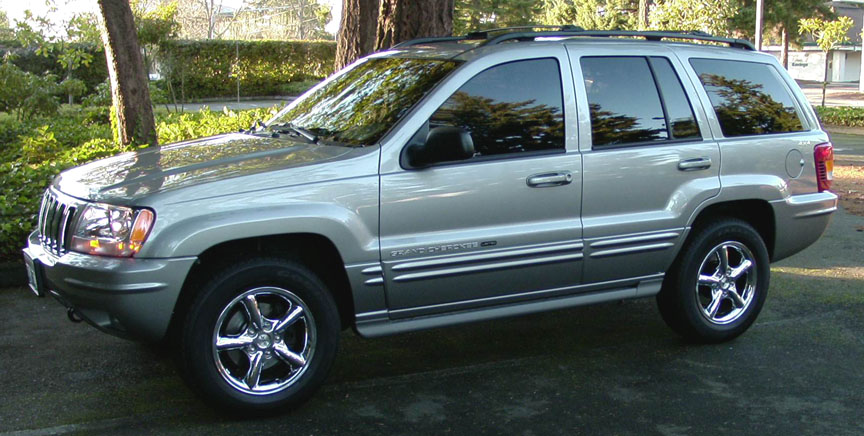 | Shown above, a 2002 Grand Cherokee with Llumartm brand film installed on driver and passenger side windows. The film darkness is rated at 15% and the shade color is Dark Charcoal. Darkness ratings may vary among different companies, the 15% Llumar may be comparable to other brands’ 20% ratings. The Llumar 15% is almost an undetectable match to the factory tint. Most states prohibit levels below 35%, and some have other restrictions as well. It is best to check with the laws in your state before having your windows tinted. You can find a nicely detailed State Law Chart at WindowTinting.com |