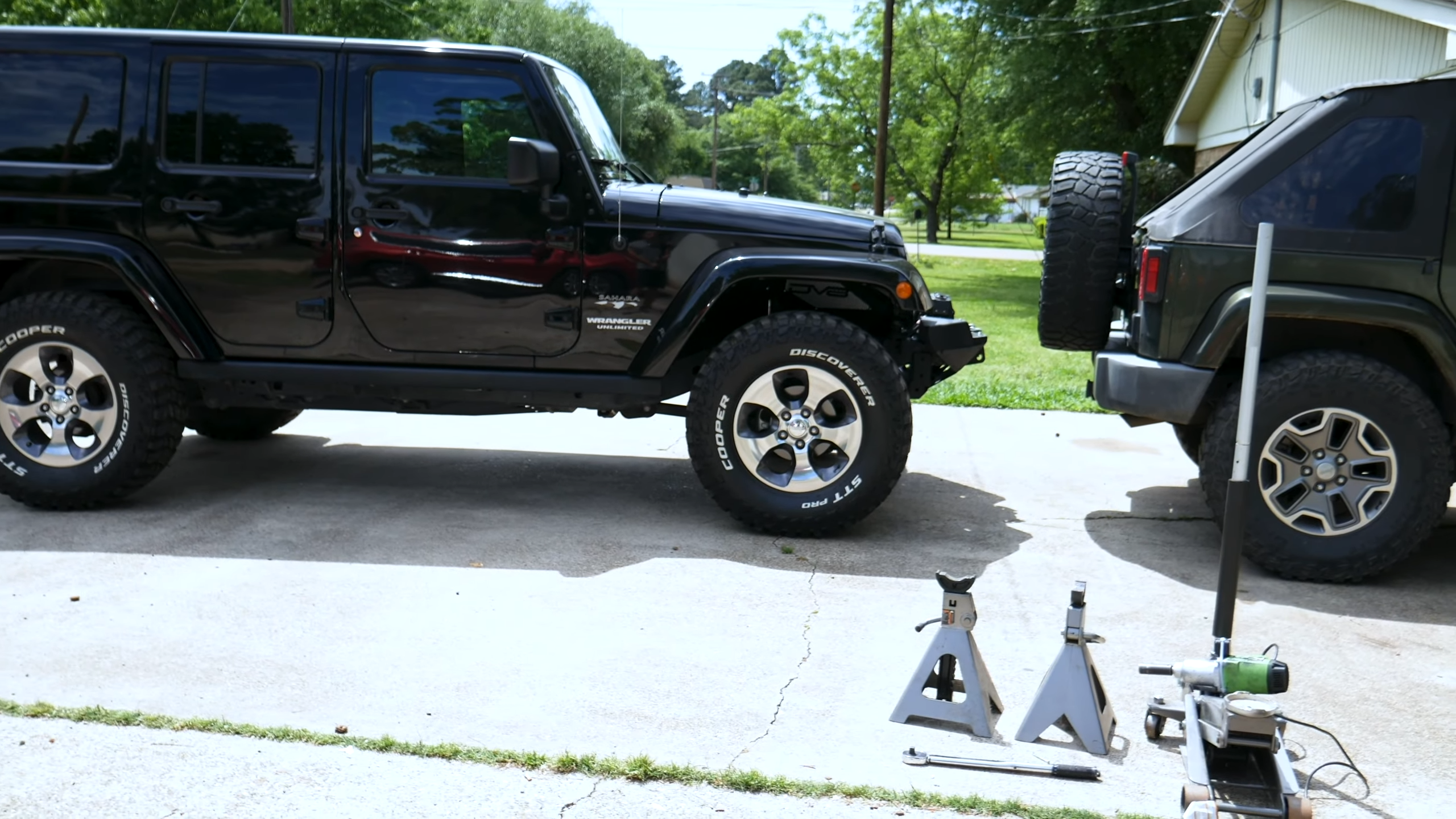 Before comparing sound levels, the team switched the tires between the two Jeeps to make the test fair. The soft-top Jeep had older Cooper STT Pros that were two years old and already loud. The hardtop Jeep used newer six-month-old STT Pros, which produced less road noise.