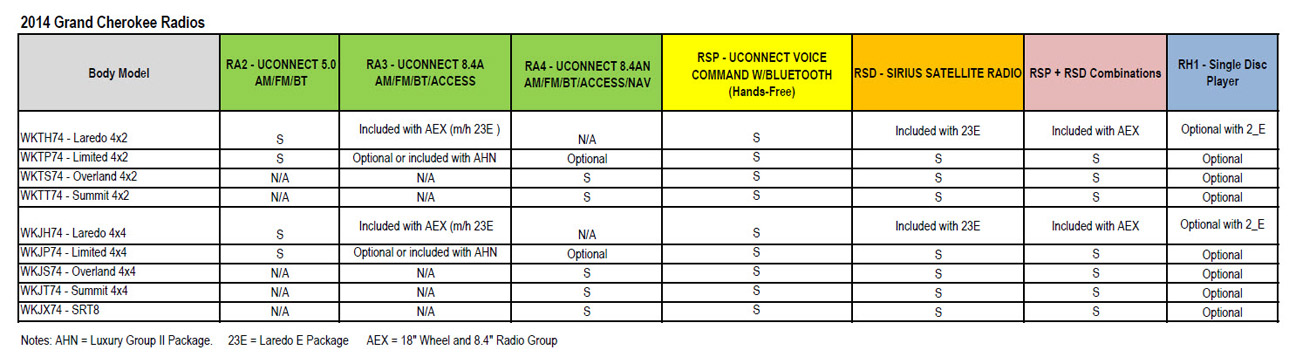 | 2014-2017 Grand Cherokee factory radios (North America) |