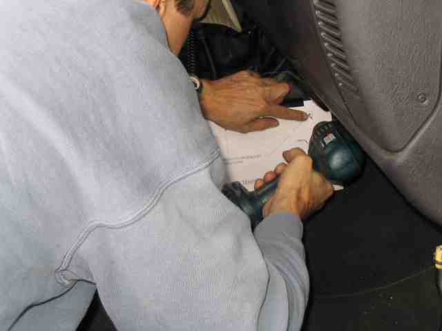 It didn’t take Mike long to grab the cordless drill once he had the template taped in place for the Console Netz.